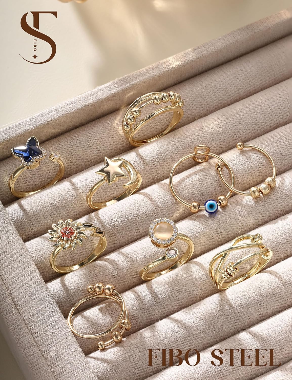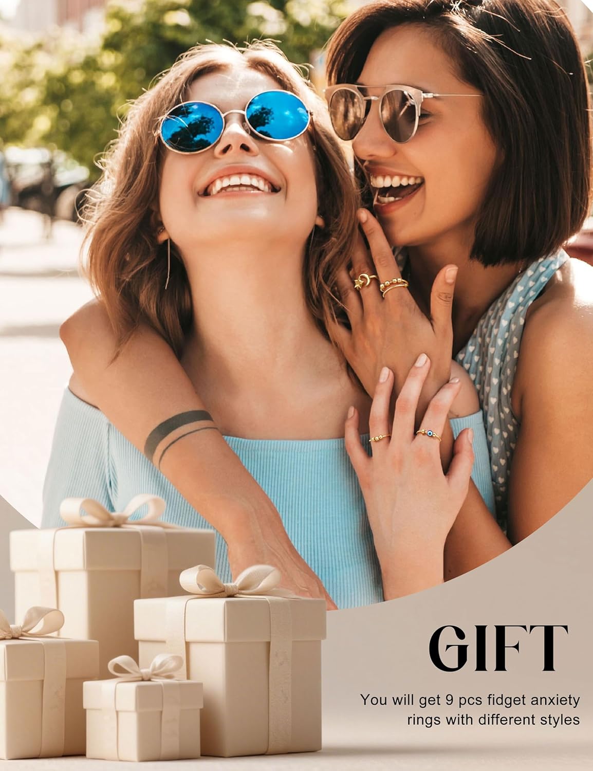 Perfect gift: Rings for women & men for every occasion: This fibo steel 9 PCS fidget ring set is a thoughtful gift for wives, girlfriends, moms, daughters, friends, or colleagues. Suitable for anniversary, mother’s day, birthdays, graduations, christmas, valentine’s day, or as a “calm down” gift for anyone dealing with stress. As a popular fidget ring set, it combines practicality (anxiety relief) with style, making it a memorable present that’s both useful and beautiful
