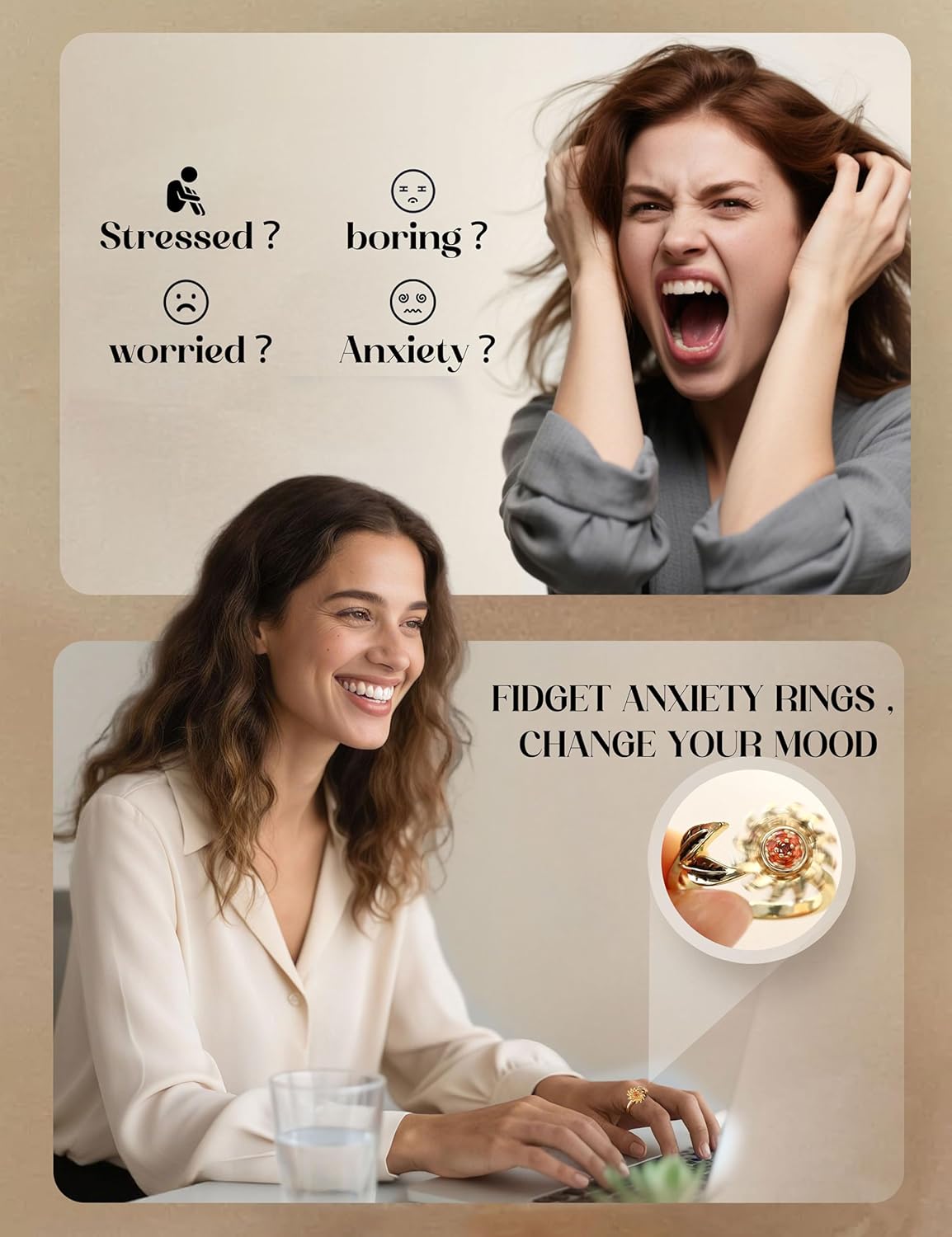 All-occasion fashion: Stylish fidget rings for daily wear: Beyond stress relief, these fidget spinner rings for women and men are sleek and fashionable—perfect for daily casual wear, office outfits, party looks, dates, or travel. Wear alone for a minimalist vibe or stack with other jewelry—these anxiety rings blend functionality with trend-forward design, letting you stay calm and chic anywhere