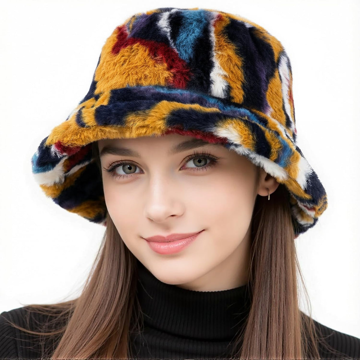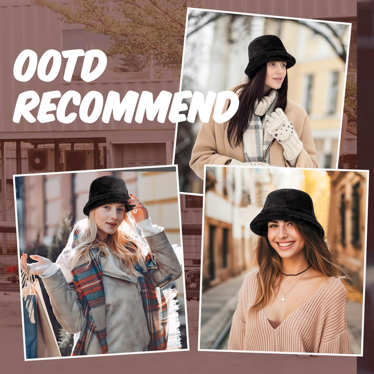 Stylish Yet Warm Winter Hat : Whether you're dressing up or dressing down, you'll look effortlessly stylish in this fuzzzy bucket hat for women. The faux fur on the outside of this bucket hat can offer you maximum and long-lasting heat retention, whether it's a sweater, jeans, winter coats, boots, jackets, vests, scarves and more, it can be easily paired with it