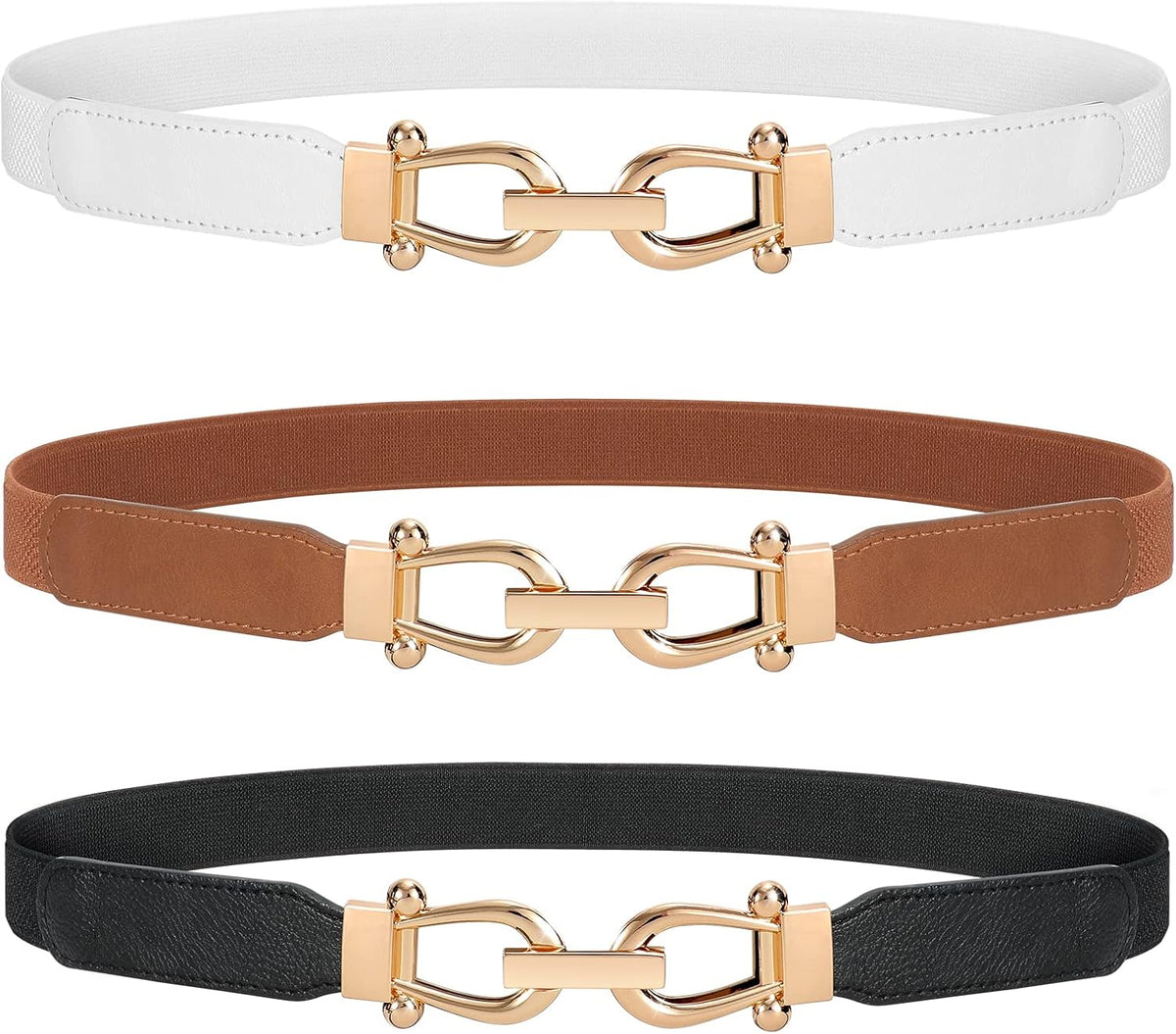 Women Belt Size--- High elasticity makes the waist belt suit for most women waist size from 20" to 45". The width of the stretch belt is 2.5cm/0.98”. Black,Brown,White several classic colors for choice, perfect accessory to shape your waist for blouse, dress, skirt, jeans or sweater to make you unique and classy.