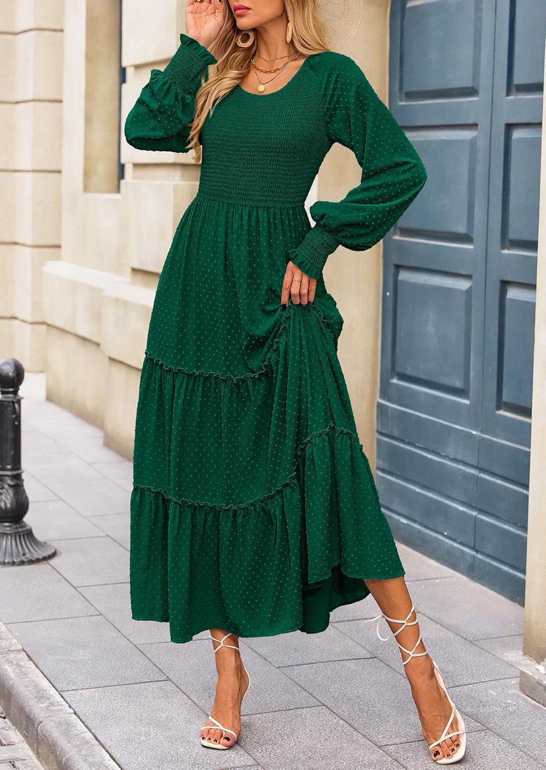 Chic Designs: Smocked Maxi Dress; Long Sleeve Dress for Women; Tiered Ruffle Dresses; Flowy Dress for Women; Puffy Sleeve Dress; Fall Dresses for Women; A Line Dress; Womens Dresses with Pockets; Scoop Neck Dress