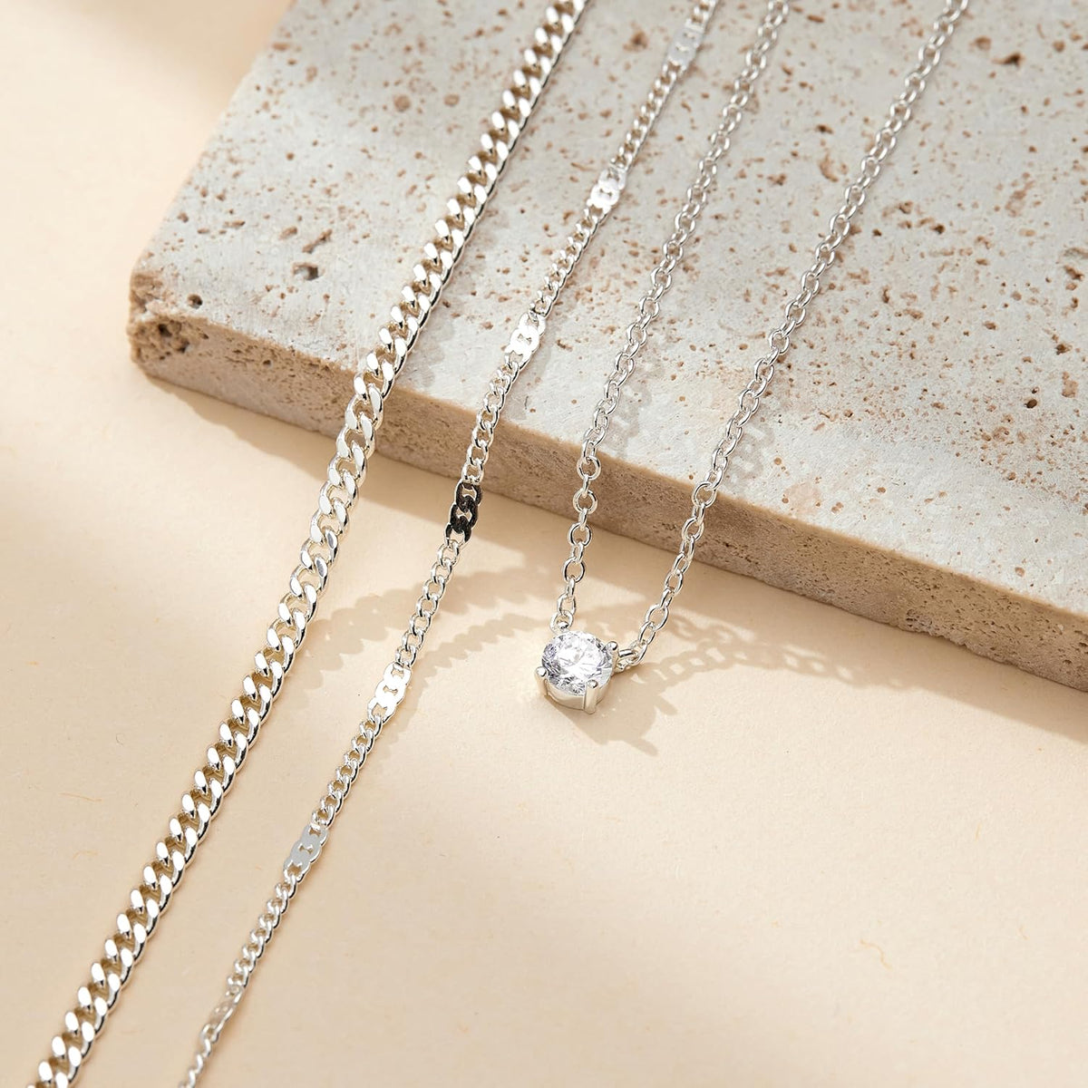 [Layered Chain Necklace Set]: This trendy 3-piece necklace set features a chic Cuban choker chain, a sleek dot chain, and a dainty long pendant adorned with sparkling cubic zirconia. Wear them together for a bold stacked look, or style each piece solo for simple, elegant layering.