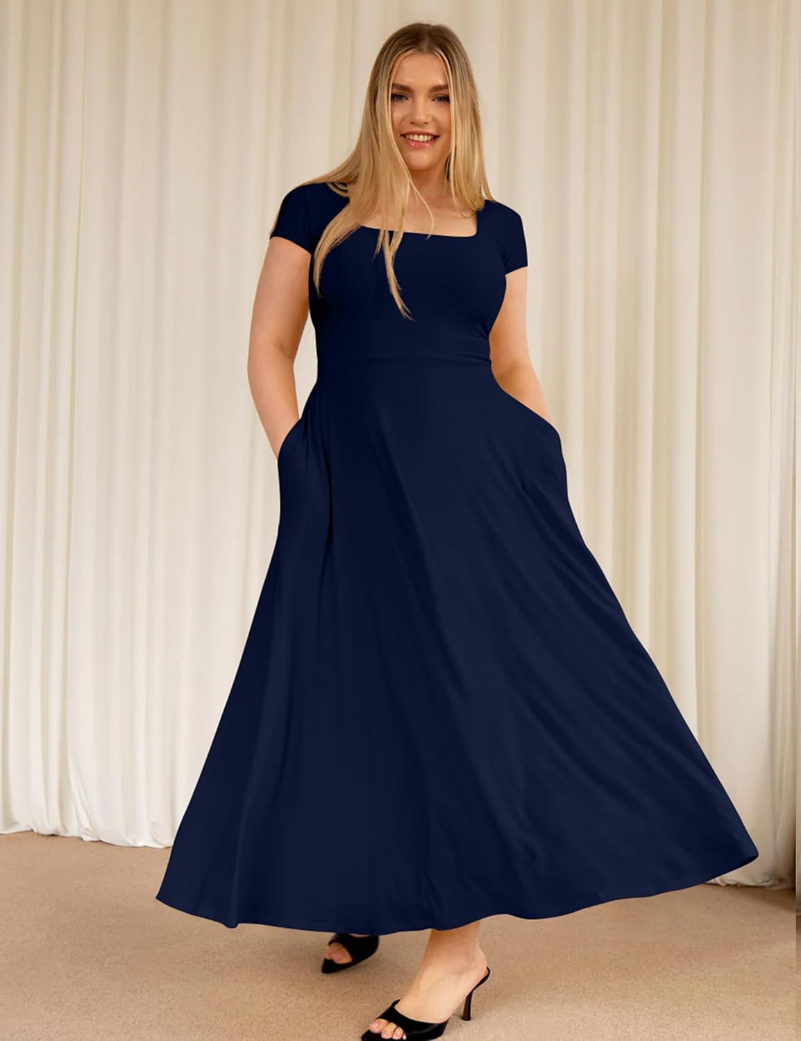 Features:Women's elegant long dress, solid color;short sleeve; Square neck can will show off your long neck;side pockets for storing small objects on the go, back tie can be freely adjusted to the waist elasticity, the dress is naturally draped, and it is agile and flowing between walks, exuding a charming and dynamic beauty.